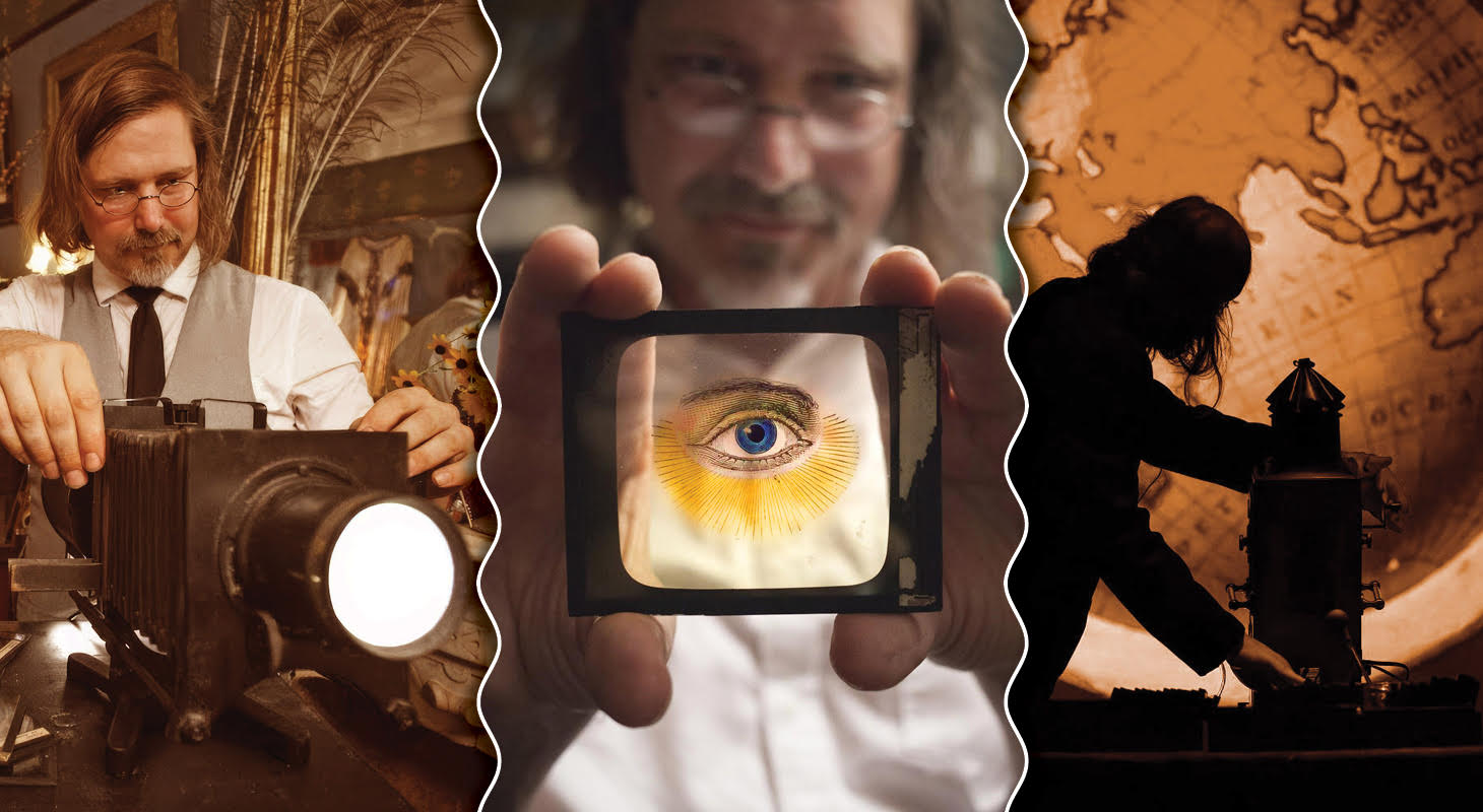 The program will be presented by Dawn Elliott and Joel Schlemowitz, magic lantern performers, working with original magic lantern glass slides and projectors. Elliott & Schlemowitz perform magic lantern shows and give lecture/demonstrations at museums and other historic, cultural, and educational institutions.